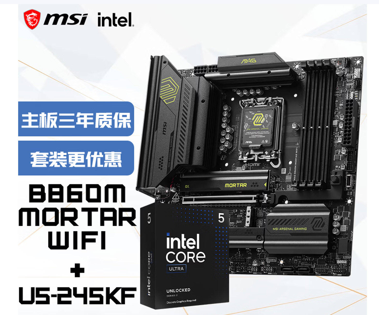 先给大家快速梳理一下英特尔(intel)酷睿Ultra5 245KF处理器在2025年的综合表现——作为intel第15代Ultra 200S系列的中端主力型号,这款堪称“新时代中端标杆”,它既延续了intel在游戏性能和稳定性上的传统优势,又在架构、工艺、能效比上实现了全方位升级,同时精准避开了高端型号的溢价陷阱,定价卡在1500元左右的黄金价位,是2026年多数中端装机用户的首选CPU。在2026年硬件市场竞争白热化的环境下,它一边压制着AMD同级别的R5 9600X,一边替代了前代i5 14600KF的市场地位,无论是单独购买,还是搭配微星B860M迫击炮主板组成套装,都有着极高的性价比,尤其是套装价格往往能做到2900-3000元区间,比单独购买两者节省200-300元,真正实现“CPU加主板,价格更划算”,彻底打破“上市价虚高”的刻板印象,成为2025年中端DIY平台的“流量担当”。