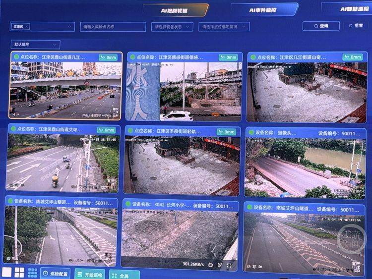 屏幕一侧,2400多个感知设备正同步运行。摄像头、液位计、无人机、智能雨箅……这些来自公安、水利、气象等7个部门的数据,全部汇聚在态势感知“一张图”上。袁江介绍,摄像头和液位计组成“多维感知”,既能看到现场实时画面,也能掌握实际降雨和积水深度。降雨量越大的点位会自动排在前面,从而大大减轻了巡查压力。通过AI“视觉模型”,系统还能精准识别积水告警事件,智能匹配应急预案,处置工单秒级推送一线班组,无效、低效巡查减少75%。